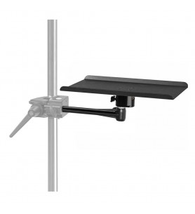 The Tether Tools Aero Utility Tray can be used on any lightstand or tripod to support items such as external laptop batteries or to keep strobe battery packs, generators, and cables off the ground.