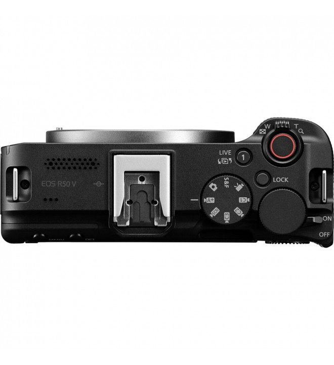 Brezzrcalna kamera Canon EOS R50 V za ustvarjalce in vlogerje ponuja možnost možnost menjave objektiva, dodaja snemanje UHD 4K60p, horizontalno/vertikalno pritrditev za stojalo in druge video-prijazne funkcije iz linije Cinema EOS.