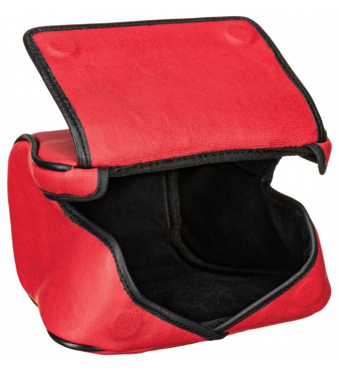 For use with select Leica cameras, this red Ettas Pouch protects the camera body and mounted lens when not in use. It is made from a soft, coated canvas material to guard against bumps and scratches.