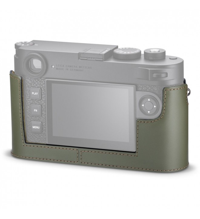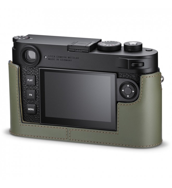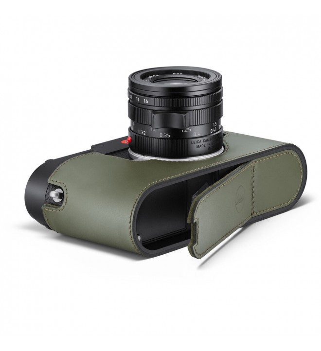 The half-case made of supple, vegetable-tanned Italian leather provides optimal protection for the M11. Available in three attractive colour options (Black, Cognac, and Olive Green). No tools are required to attach the protector, and all operating elements as well as the USB port remain fully accessible. Camera accessories such as a shoulder strap, wrist strap or thumb rest can also be used without restrictions. A flap on the protector’s bottom offers instant access to the battery and memory card, whereas an additional compartment for an additional SD-Card ensures that your M11 is always ready to shoot.