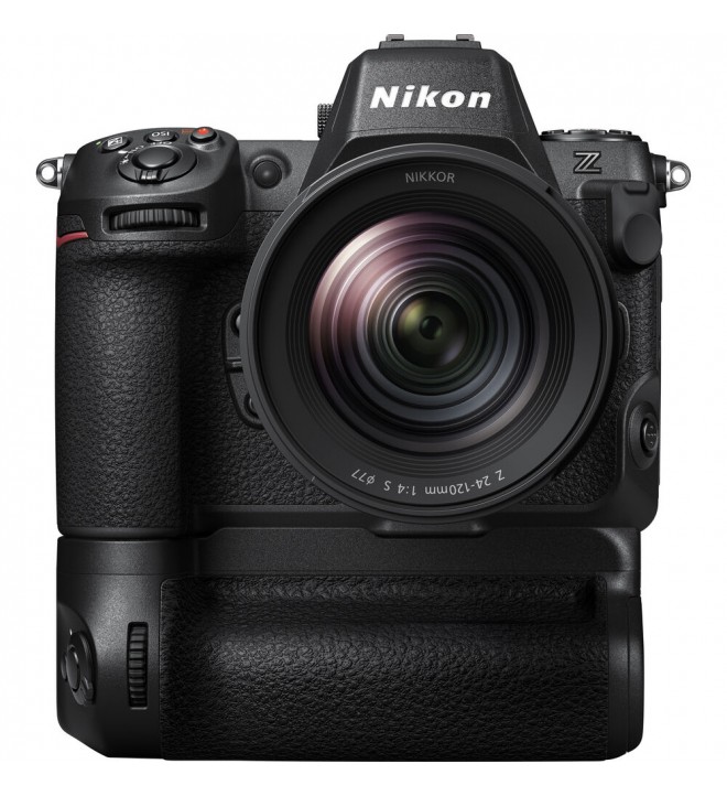 Baterijsko držalo Nikon MB-N12 (Z8), je vertikalni ročaj, ki zagotavlja dodatno moč in udobnejši oprijem pri delu v navpičnem položaju fotografiranja. Njegova zasnova vključuje sekundarni sprožilec, gumbe za upravljanje in funkcijski gumb za bolj intuitivno upravljanje fotografiranja.