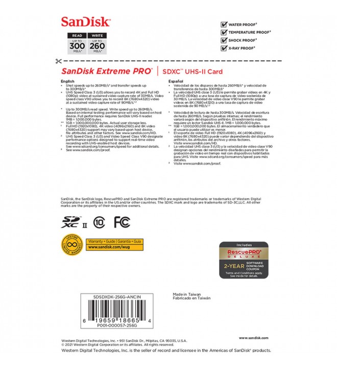 SanDisk Extreme PRO® SDXC™ 256GB 300MB/s UHS-II