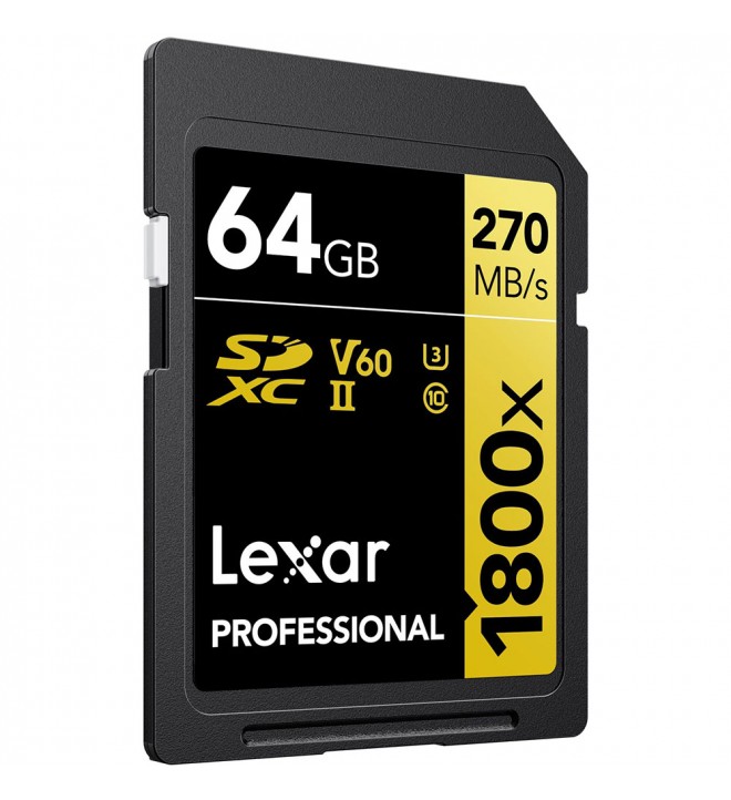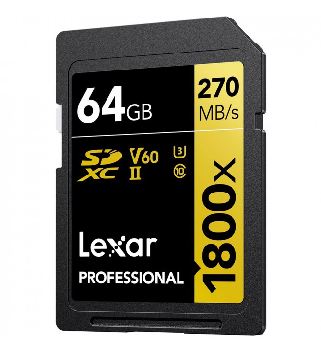 Lexar® Professional SDXC™ 64GB 1800x UHS-II (R:270/W:180MB/s) C10 V60 U3