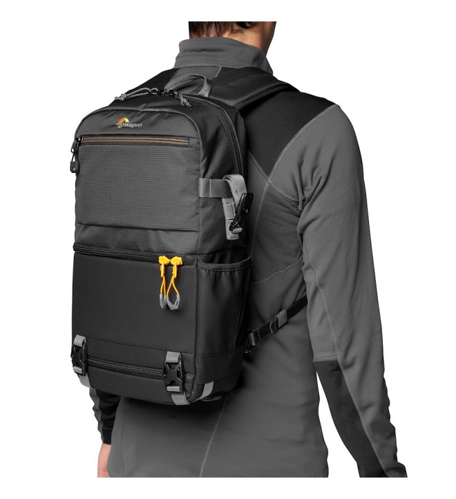 Enoramni nahrbtnik, primeren za potovanja, je zasnovan tako, da bo vaš kompaktni DSLR ali brezzrcalni komplet na dosegu roke, vaš tablični računalnik, pametni telefon, slušalke, denarnica in druge pripomočke pa dobro organiziran in zaščiten. Uporabljeni materiali dobro ščitijo pred umazanijo in vlago, medtem ko predal za naprave CradleFit ™ ščiti do 13-palčni tablični računalnik pred udarci.