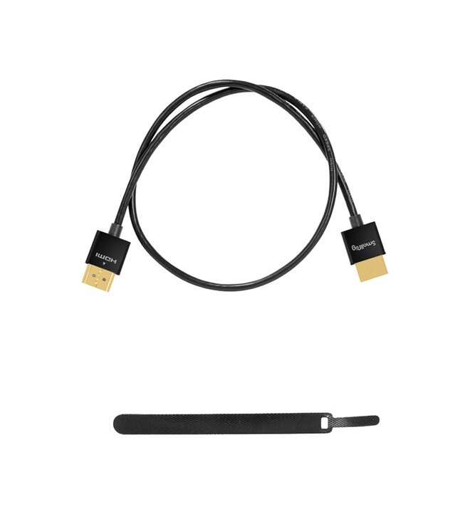 SmallRig Ultra Slim 4K HDMI cable 55cm 2957 is a high-quality HDMI cable specially designed for your camera rig. It’s compatible with DSLR, monitor, wireless video transmitter & receiver and other devices with full-sized HDMI ports. It’s HDMI 2.0 version and supports resolution up to 4K@60HZ and will be backward compatible. Ultra-slim design with 3.6mm outer diameter makes it thinner and softer than a regular HDMI cable. Low-profile connectors will not block the adjacent ports. It’s a perfect HDMI cable for your camera rig with a 55cm cable length. The enclosed cable tie for cable management will help make your rig neat.
