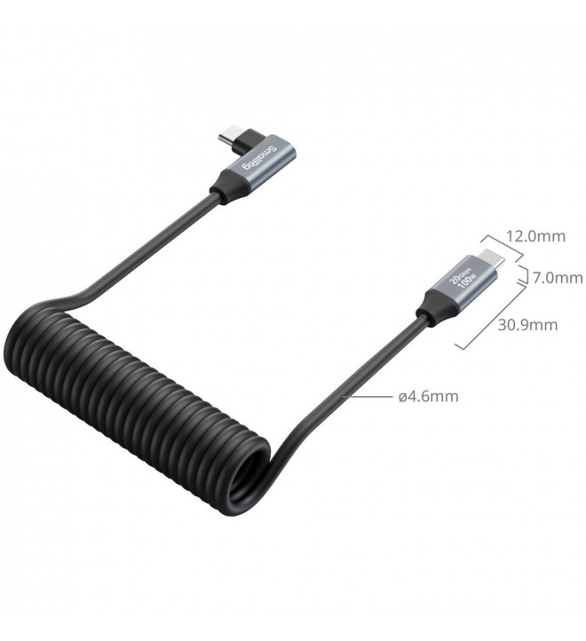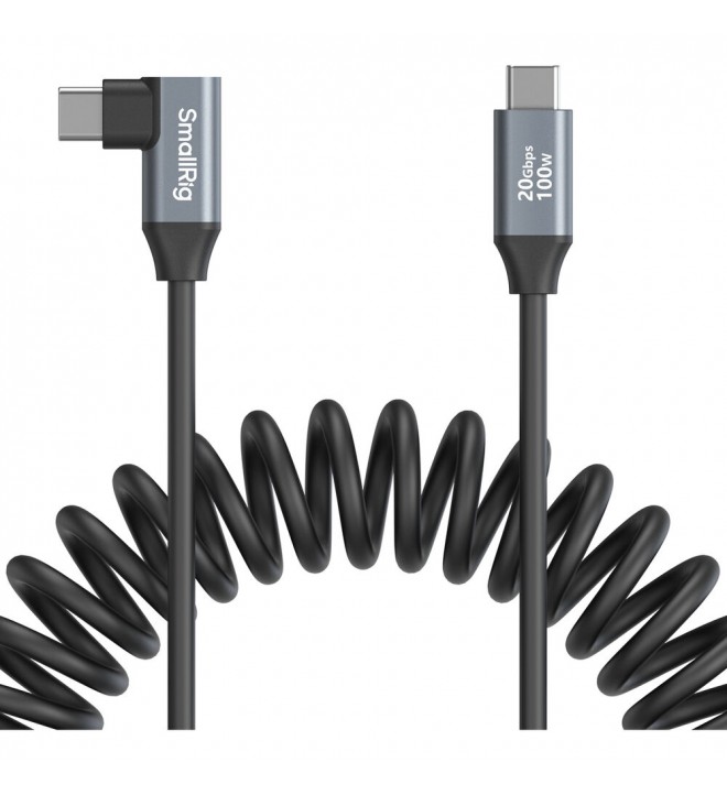 SmallRig 4792 USB-C Straight to USB-C Angled Coiled Data Cable