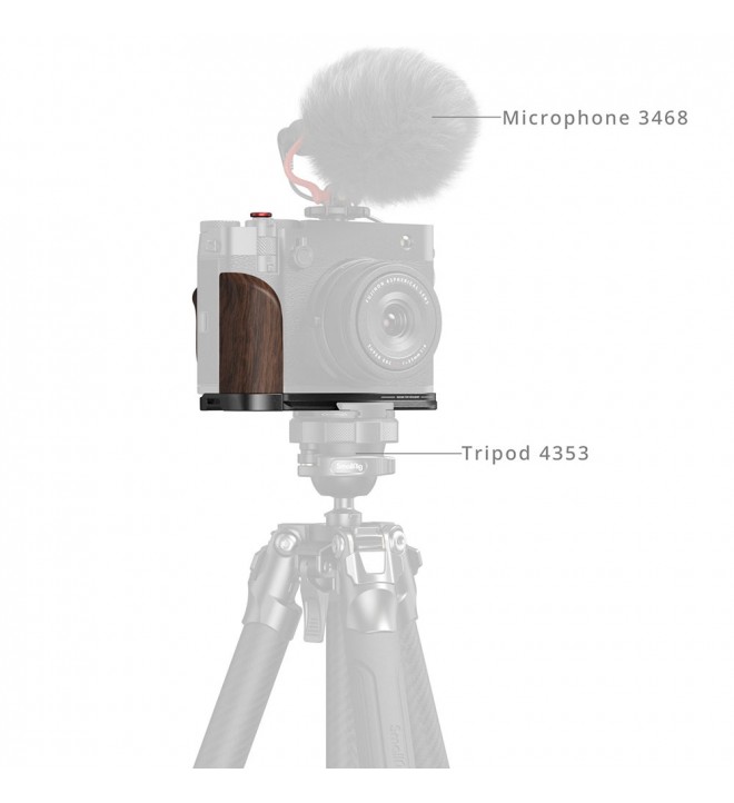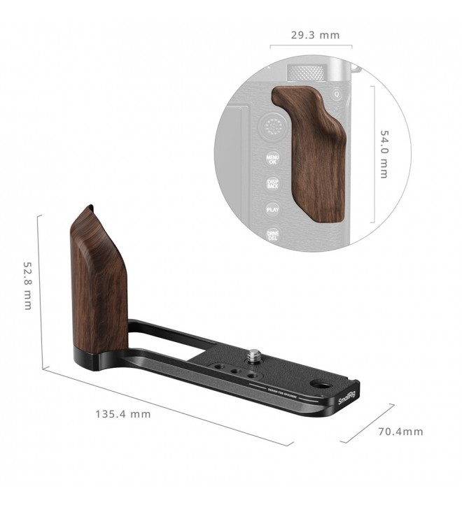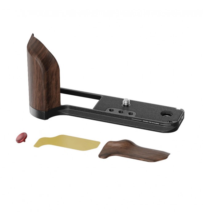 SmallRig L-Shape Mount Plate with Wooden Handle for FUJIFILM GFX100RF (Black) 5266 is expertly designed to enhance both the aesthetics and control of your camera. It attaches securely with a 1/4"-20 screw and features built-in silicone pads to prevent scratches.