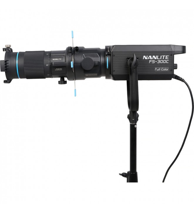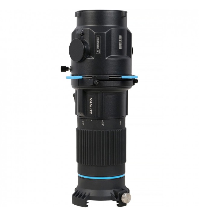 Za razliko od mnogih tradicionalnih projekcijskih sistemov NANLITE Bowens Mount Projection Attachment z zvenečim imenom "PJ-BM-25-45" uporabnikom omogoča spreminjanje kota žarka s preprostim vrtenjem obroča za povečavo. Popolnoma vrtljiv za 360° ohišje objektiva omogoča prilagajanje snopa brez odstranjevanja gobojev ali spreminjanja zaklopov, zaradi česar je hiter in prilagodljiv na snemanju. To omogoča hitre prehode med širokimi in ozkimi žarki z minimalnimi izpadi.