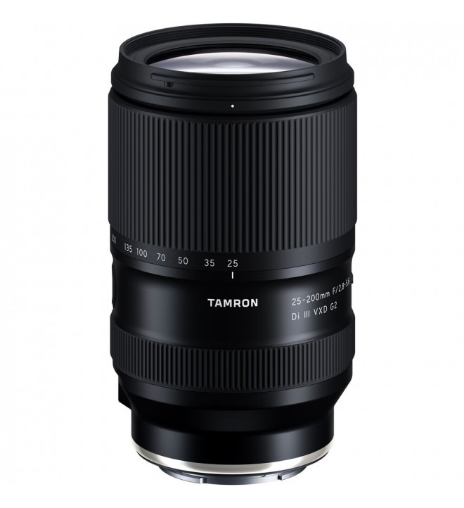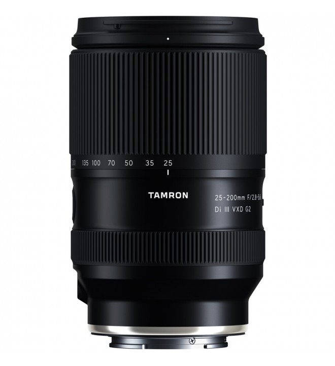 Tamron 25-200mm F/2.8-5.6 Di III VXD G2 je naslednik popularnega modela 28-200mm F/2.8-5.6 Di III RXD. Kot pionir sodobnih večnamenskih zoom objektivov TAMRON s tem novim vrhunskim objektivom praznuje svojo 75. obletnico. Novi model G2 ohranja kompaktno velikost, hkrati pa širi široki kot na 25 mm in ohranja telefoto razpon 200 mm. Ponuja izboljšano kakovost slike in hitrejše ter natančnejše samodejno ostrenje, ki ga poganja TAMRON-ov linearni motorni mehanizem za ostrenje VXD (Voice-coil eXtreme-torque Drive). Z največjim razmerjem povečave 1:1,9 pri širokem kotu 25 mm objektiv omogoča tudi polmakro (razmerje 1:2) fotografiranje.