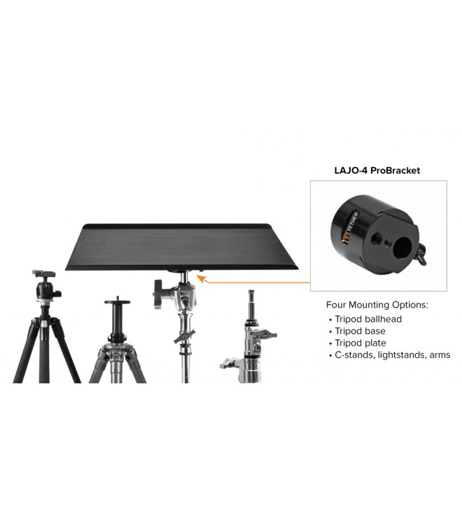 The Tether Table Aero provides photographers with a stable, portable tethering platform, perfect for daily studio use and the ideal out-of-studio workspace. It attaches easily to virtually any tripod or light stand and is compatible with all standard mounting hardware. There are 4 different sizes to suit your needs.TTA1MBLK