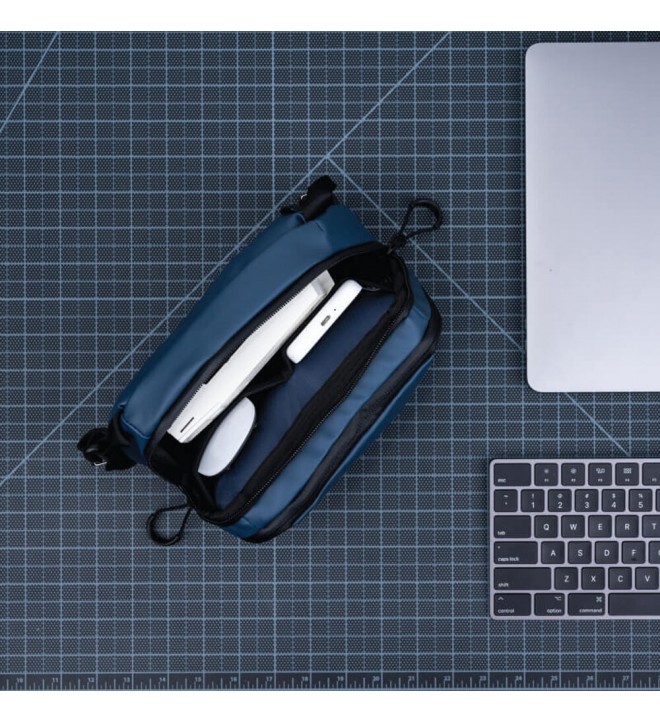 Naš cilj s tehnično torbo je bil ustvariti rešitev za vaše tehnične organizacijske potrebe (pametni telefon, spominske kartice, kabli, čitalci, zunanji diski,...). Za vsakodnevno nošenje, kratka potovanja ali dolga potovanja smo imeli v mislih vas. Vsaka velikost je bila premišljeno zasnovana z edinstvenimi organizacijskimi elementi in izdelana iz najkakovostnejših materialov, tako da je vaša oprema lahko dostopna in zaščitena. Vsaka torba ima edinstveno zanko iz tkanine in sistem sponk na hrbtni strani, tako da lahko poljubni dve povežete skupaj in ustvarite mega torbo. Ta sistem lahko uporabite tudi za pritrditev naše tehnične torbe na zanke za trak za dodatno opremo na zunanji strani nahrbtnika PRVKE ali DUO. Zasnovali smo tudi eleganten pas za nošenje, ki se pritrdi na torbo katere koli velikosti. Velikost torbice: velika.